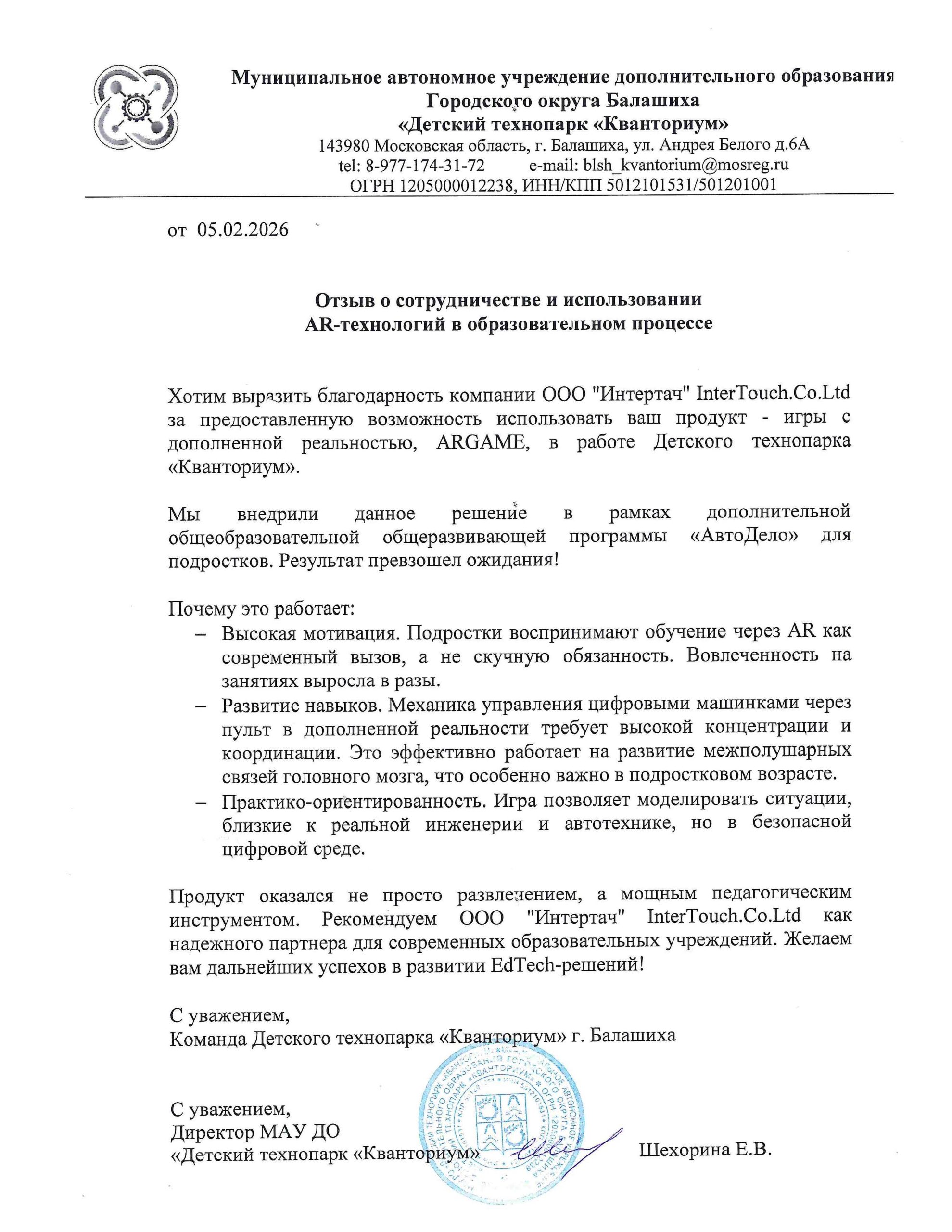 Наша компания OOO "ИНТЕРТАЧ" с 2015 года успешно осуществляет разработку и производство интерактивных систем различной сложности и направленности для образовательных учреждений и бизнеса. Мы предлагаем не просто оборудование, а готовые интерактивные экосистемы под ключ, повышающие эффективность, вовлеченность и впечатления в любом пространстве. Наша продукция находится в Реестре МИНПРОМТОРГА России.