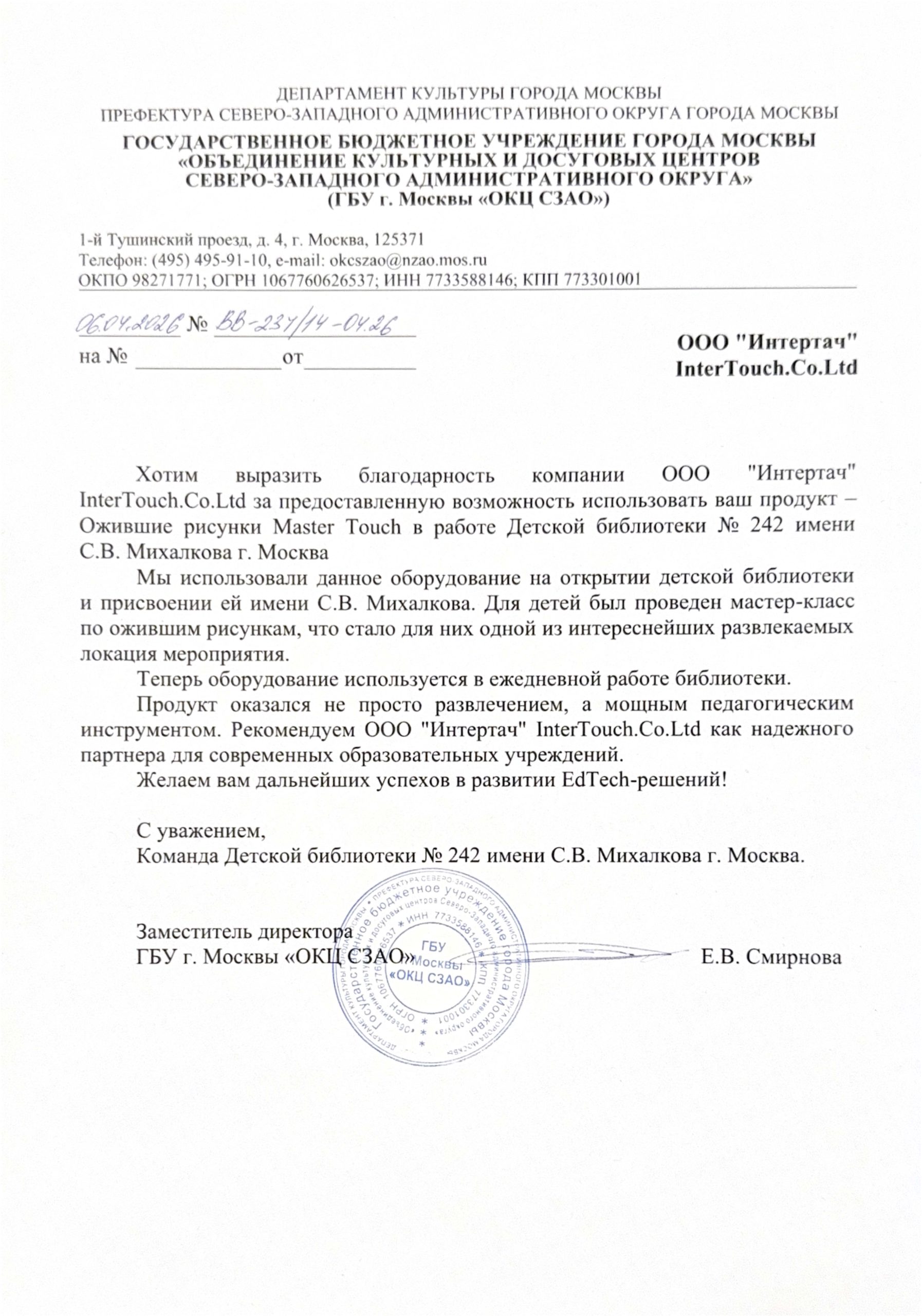 Наша компания OOO "ИНТЕРТАЧ" с 2015 года успешно осуществляет разработку и производство интерактивных систем различной сложности и направленности для образовательных учреждений и бизнеса. Вся наша продукция находится в Реестре Минпромторга России.